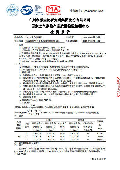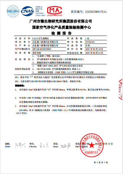 空氣消毒機(jī)檢測報(bào)告